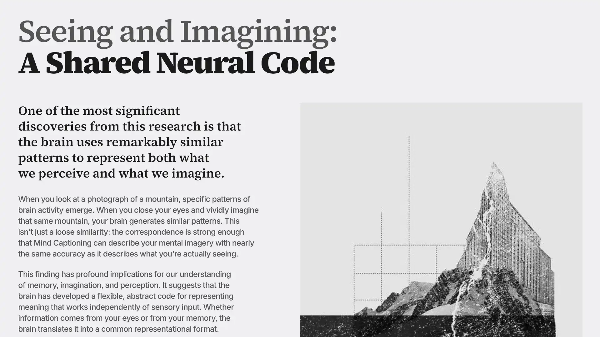 The final video delivers the science with clarity and confidence: Mind Captioning isn't about reading thoughts - it's about understanding how the brain encodes what we see. Accurate framing, accessible visuals, and careful pacing ensure the audience walks away informed, not unsettled.